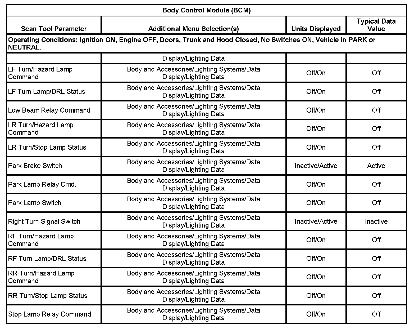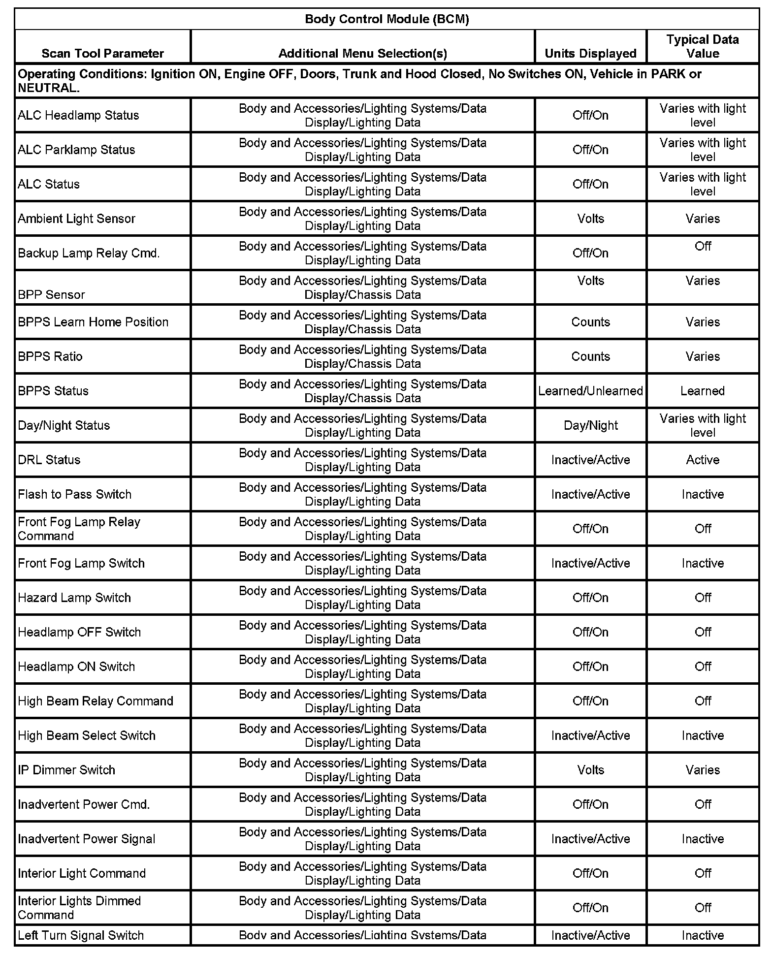 Scan Tool Data List