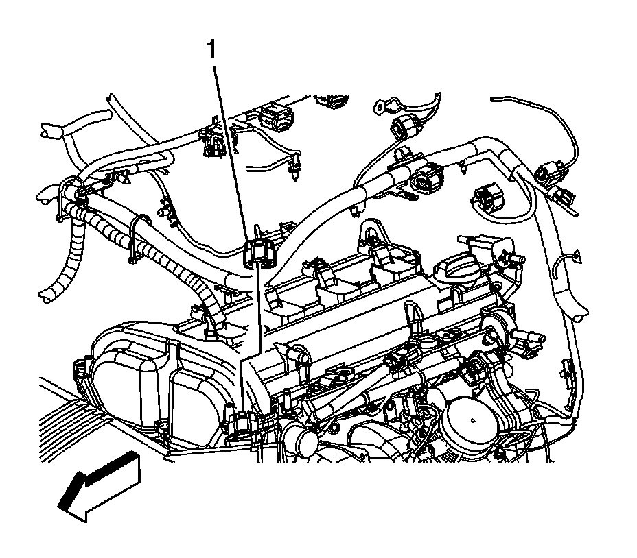 1. Disconnect the mass air flow (MAF)/intake air temperature (IAT) sensor electrical connector (1).