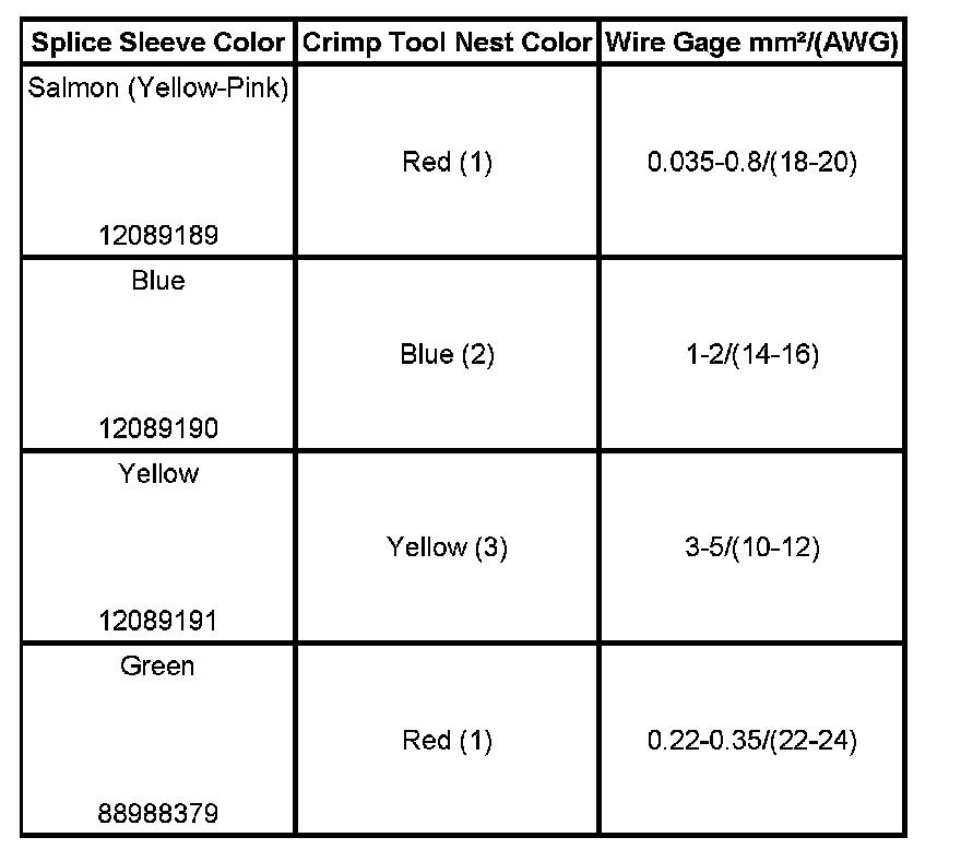 6. Select the proper DuraSeal splice sleeve according to the wire size. Refer to the table at the beginning of the repair procedure for the color coding of the DuraSeal splice sleeves and the crimp tool nests.