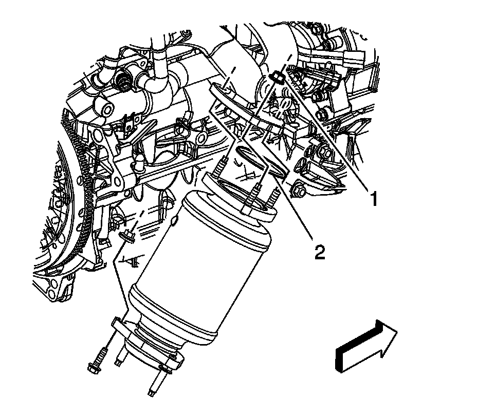 1. Install the catalytic converter along with a NEW gasket (2) to the exhaust manifold.