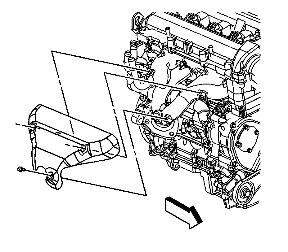 2. Remove the exhaust manifold heat shield bolts and shield.