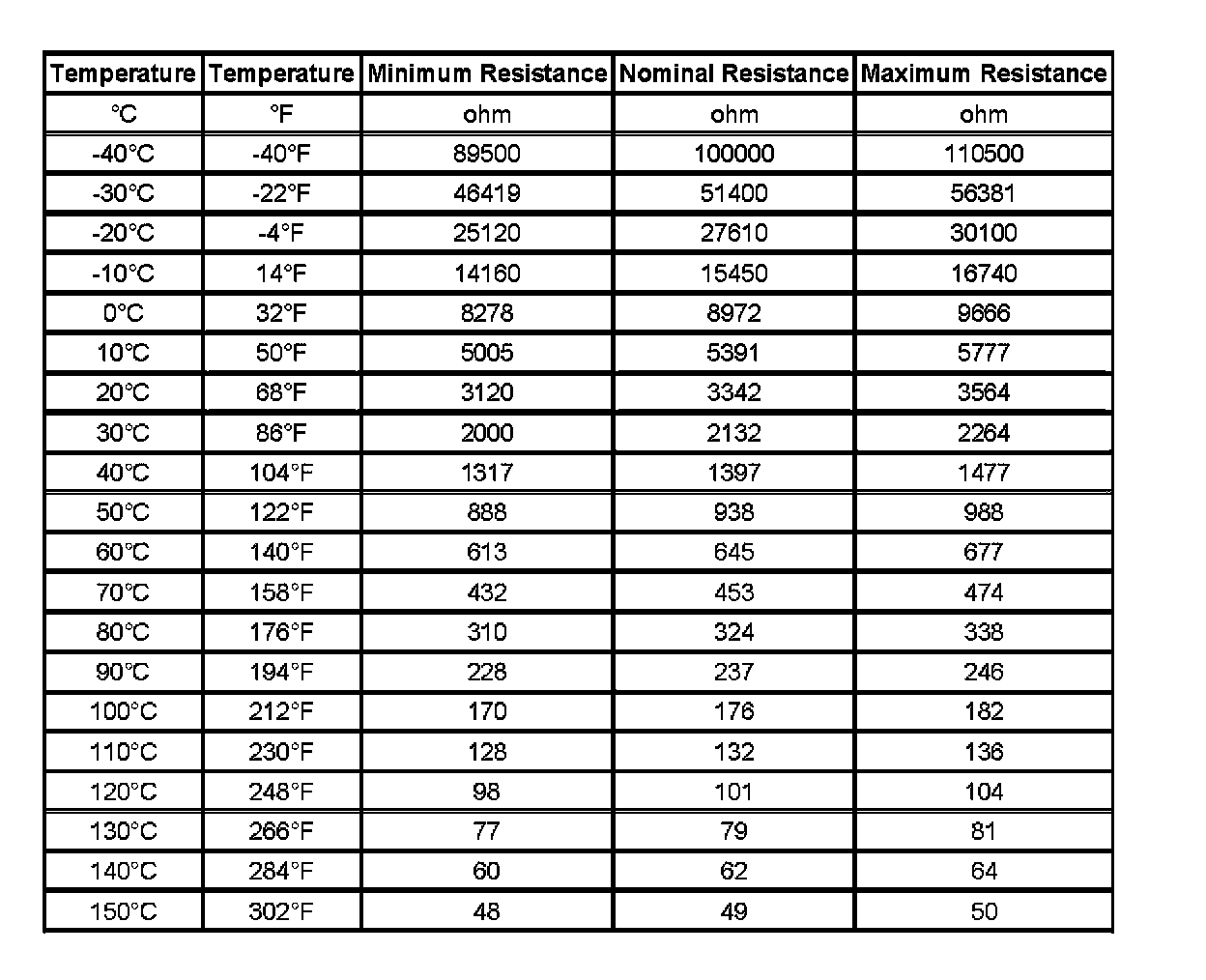 Transmission Fluid Temperature Sensor Specifications