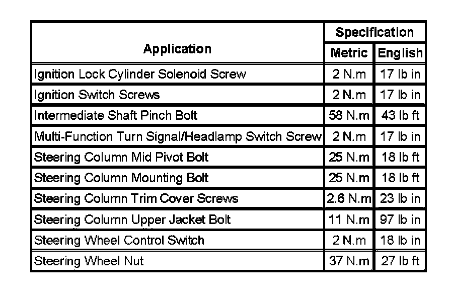 Fastener Tightening Specifications: