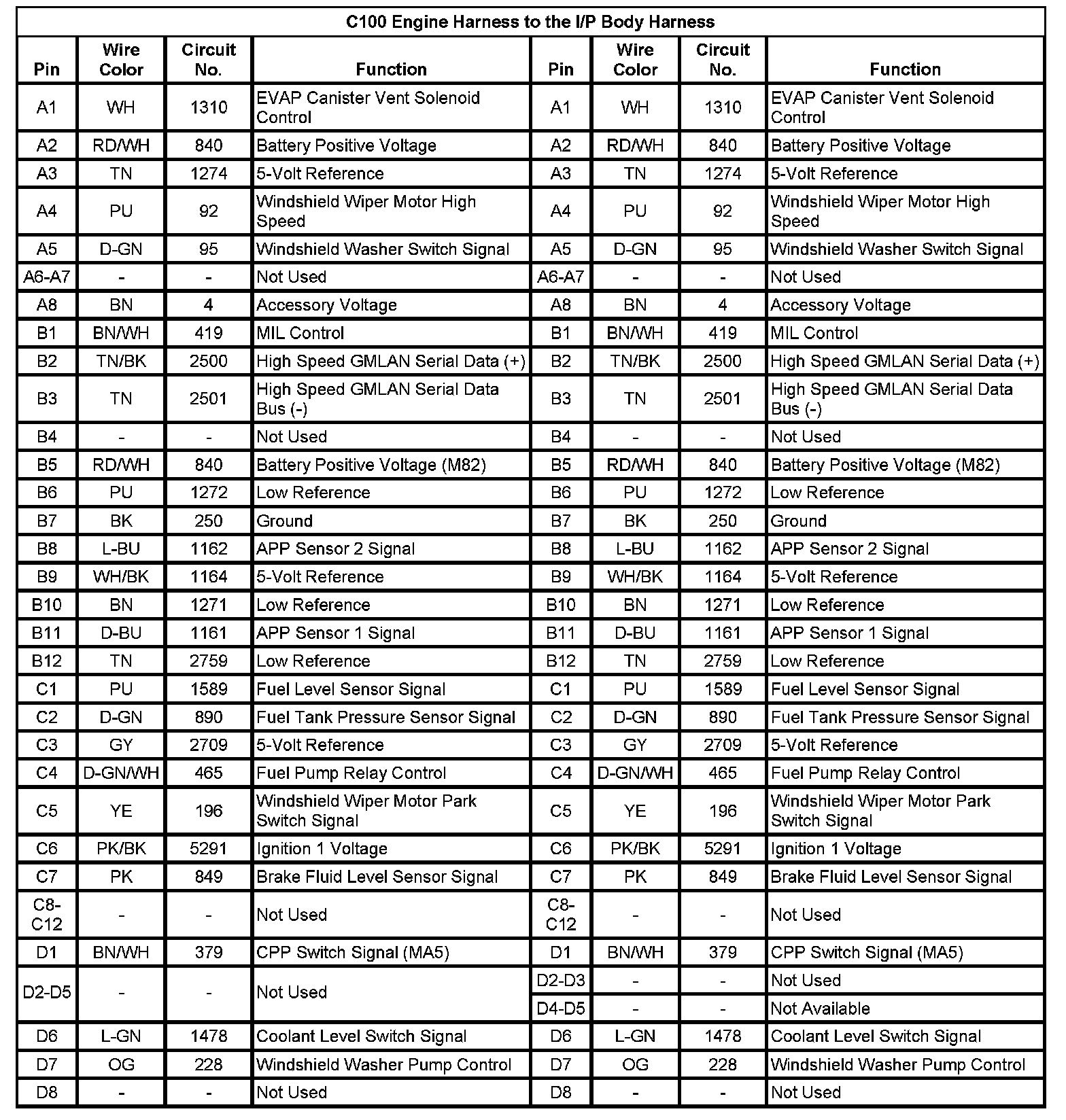 C100 Engine Harness to the I/P Body Harness