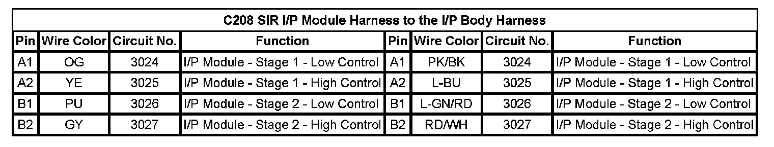 C208 SIR I/P Module Harness to the I/P Body Harness