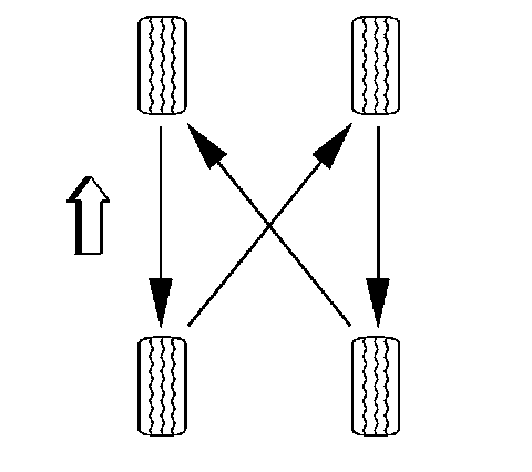 Always use a 4-wheel rotation. After rotation, check the wheel nuts for specified torque. Then, set the tire pressure.