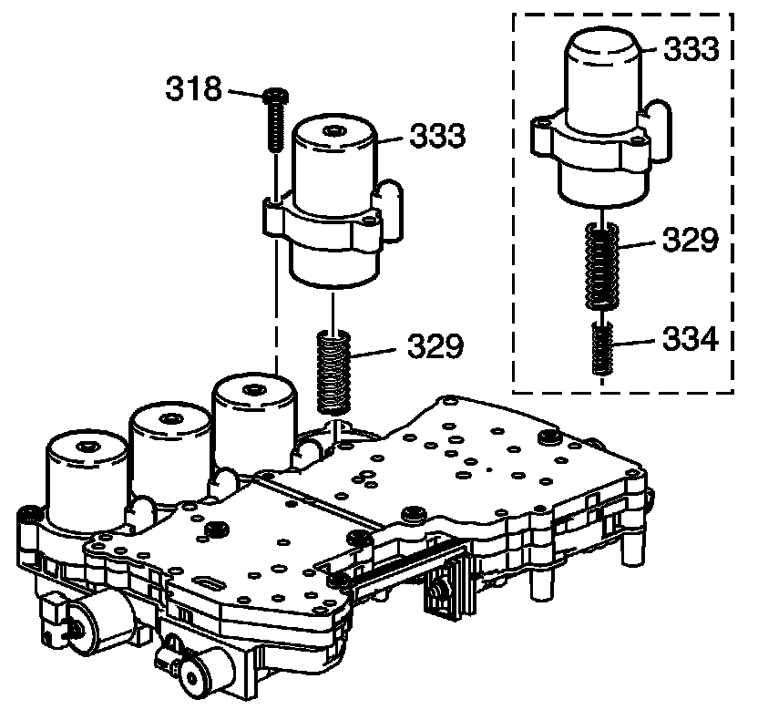 2. Remove the 2nd clutch accumulator housing (333) and spring (329).