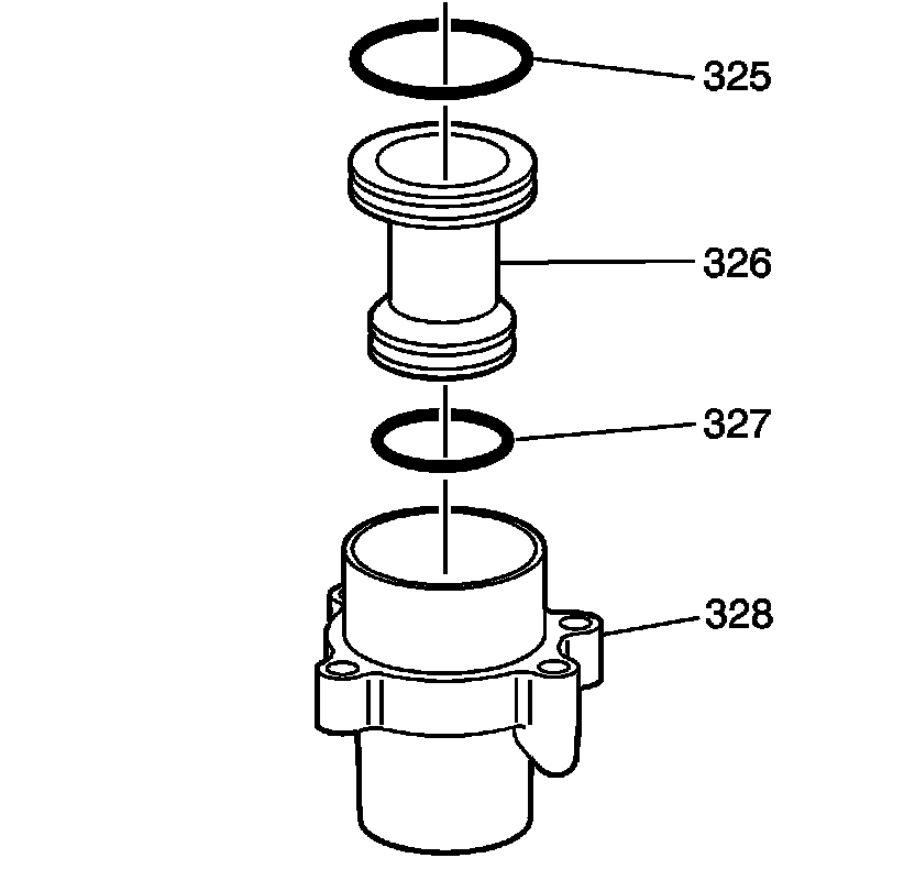 13. Remove the intermediate clutch accumulator piston (326) from the intermediate clutch accumulator housing (328).