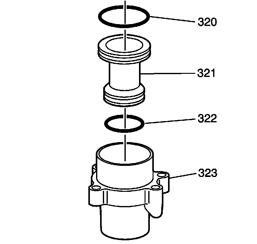 16. Remove the overdrive clutch accumulator piston (321) from the overdrive clutch accumulator housing (323).