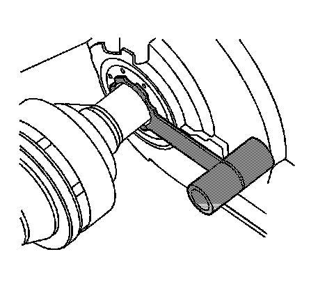 Notice: J-44394 must be installed into the differential output shaft seal prior to removing and installing the wheel drive shaft. Failure to install J-44394 as indicated may cause the splines of the wheel drive shaft to cut the differential output seal.