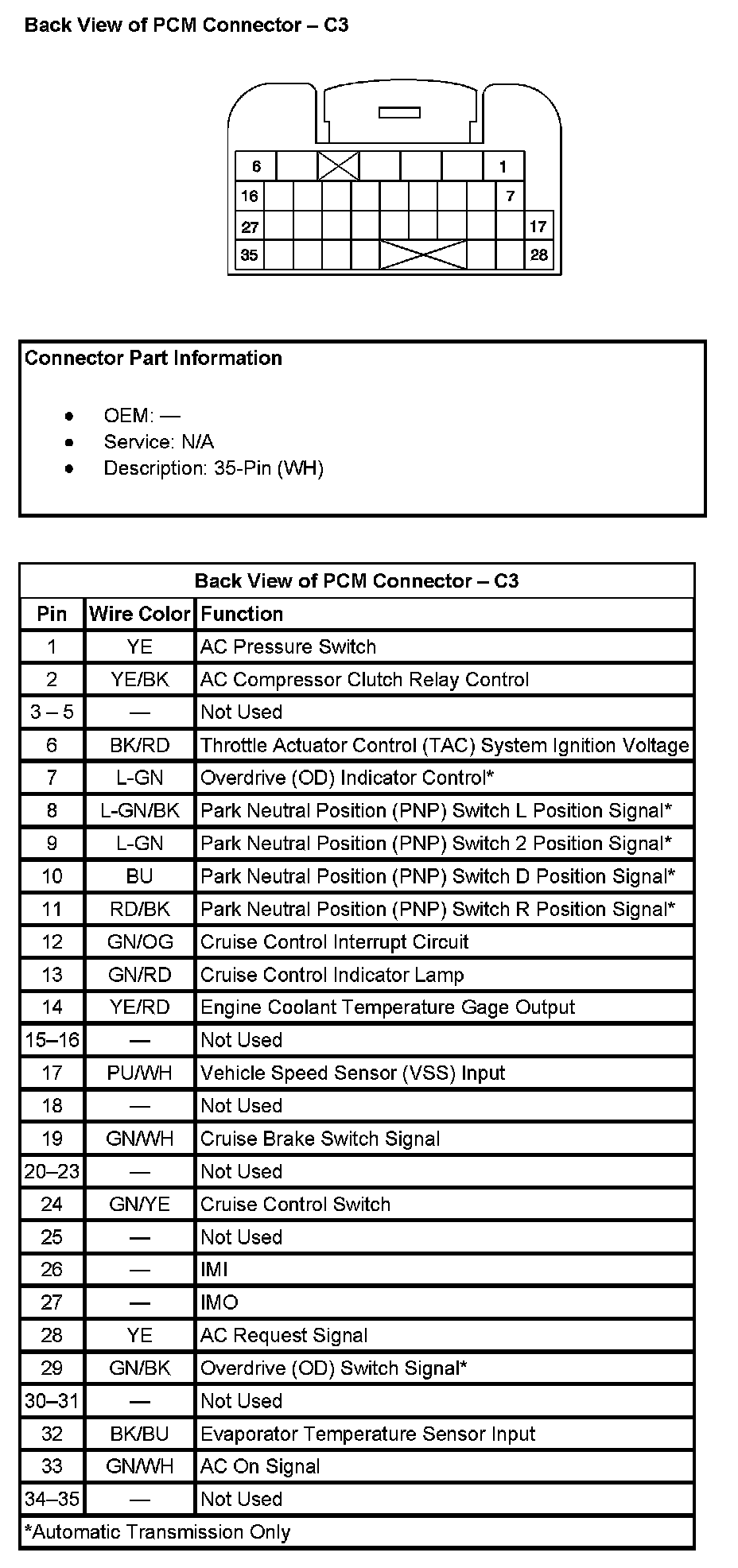 Back View Of PCM Connector - C3:
