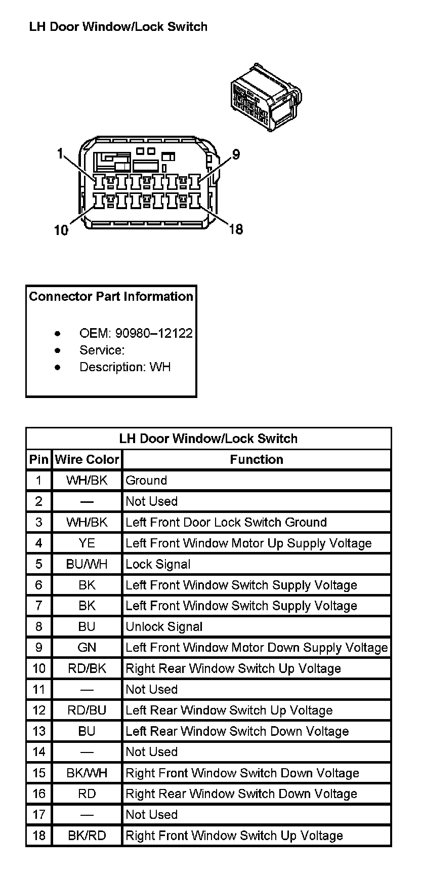 LH Door Window/Lock Switch: