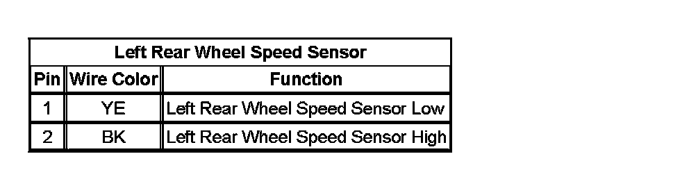 Left Rear Wheel Speed Sensor: