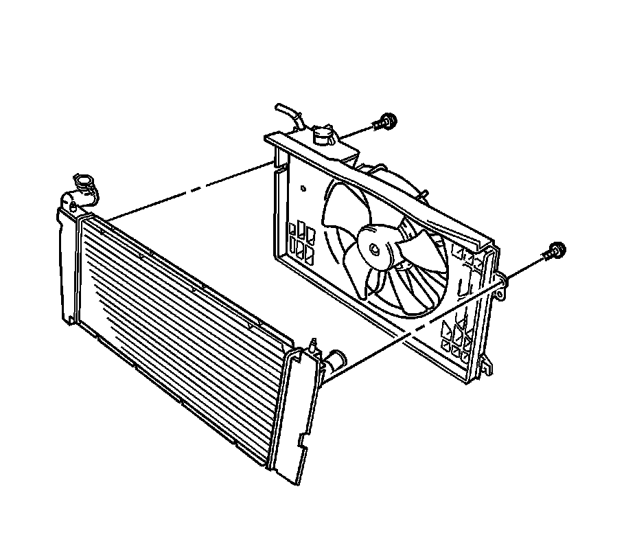 4. Position the radiator fan and shroud assembly into the vehicle; then install the 2 fan shroud bolts.