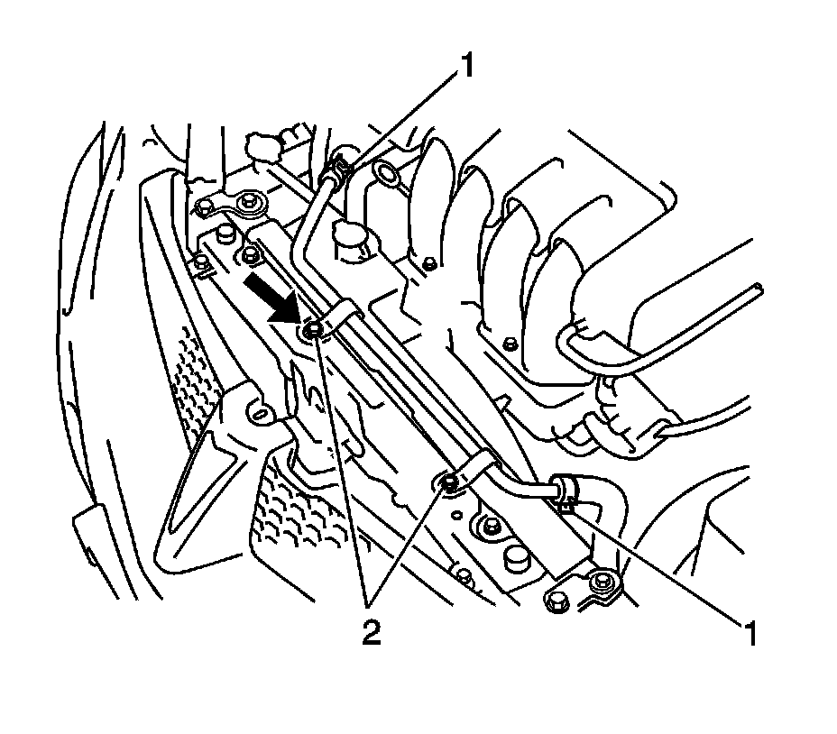 2. Remove the 2 bolts from the air pump outlet pipe (2).