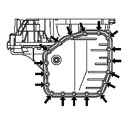 3. Install the new transaxle fluid pan gasket and transaxle fluid pan to the transaxle. Secure with 18 bolts.