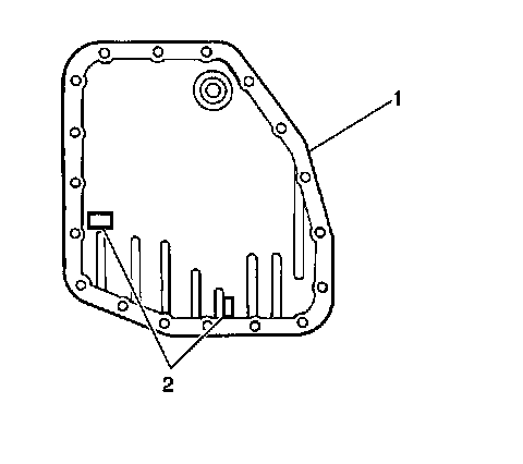 8. Clean the transaxle fluid pan magnets (2) and the bottom of the transaxle fluid pan (1).