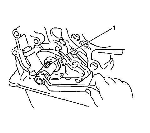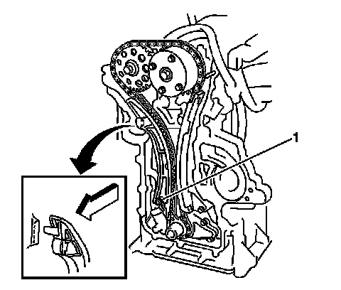 ^ Install the timing chain dampener. Secure the timing chain dampener using one bolt (1).
