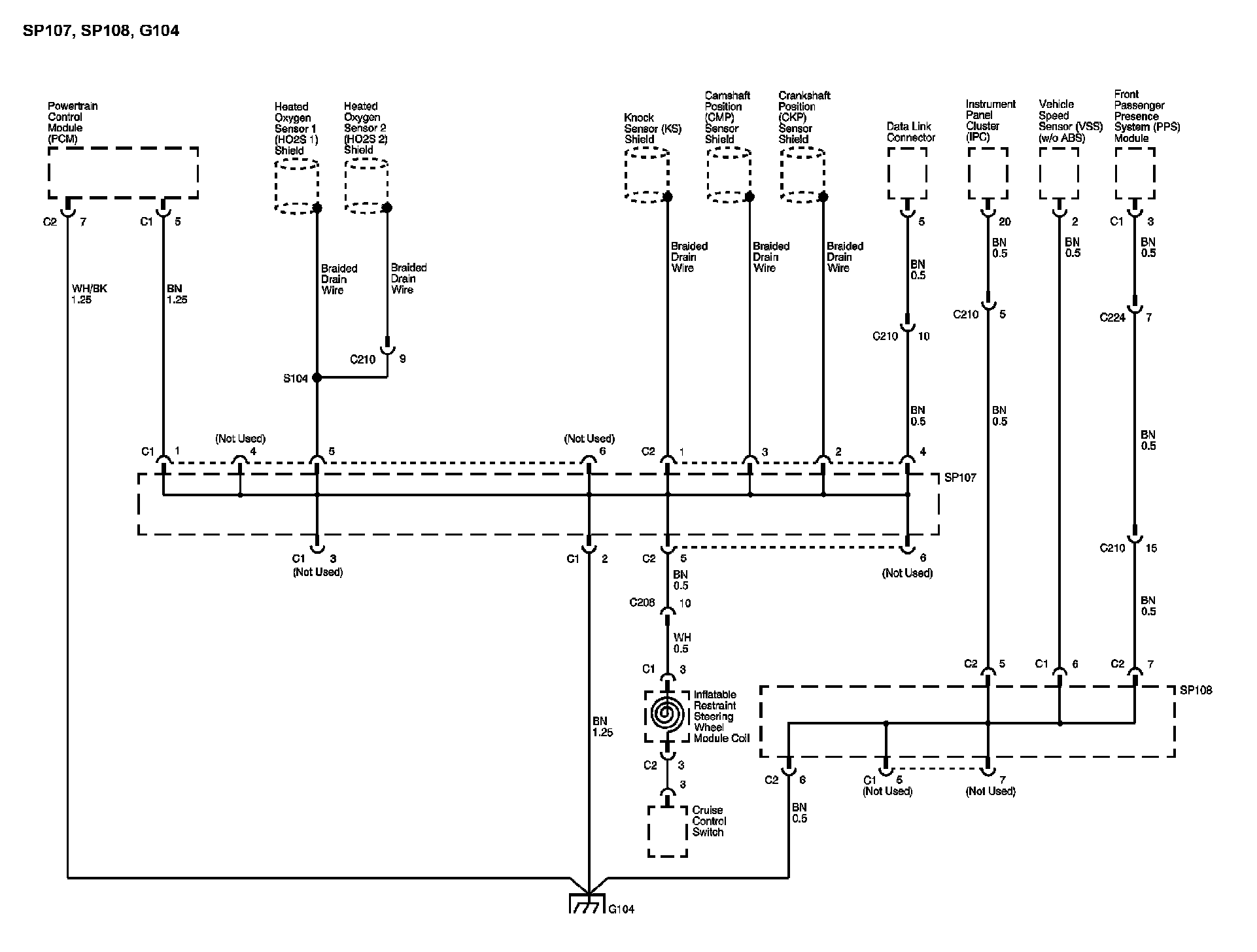 The locations for the Connectors, Grounds, Splices, and Grommets shown within these diagrams can be found via their numbers at Vehicle Locations.