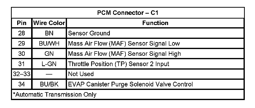 PCM Connector - C1 (Part 2):