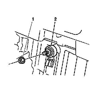 3. Remove the nut (1) securing the KS (2) to the engine block.