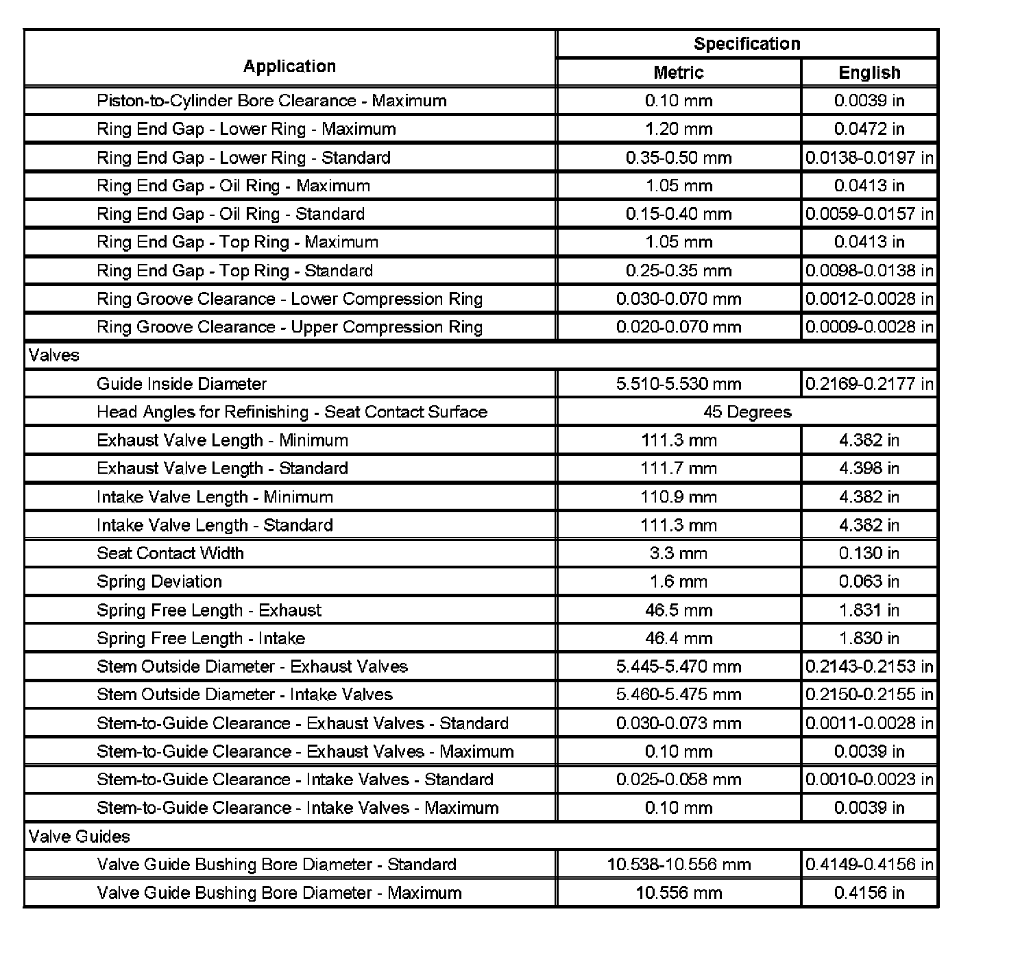 Engine Mechanical Specifications (Part 2):