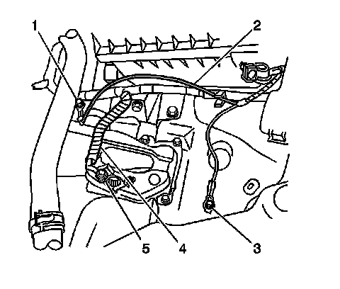 5. Remove the cable (2) from the harness retainers and remove the cable from the vehicle.
