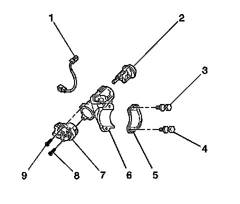 1. Install the ignition switch (7) and the 2 screws (8,9).