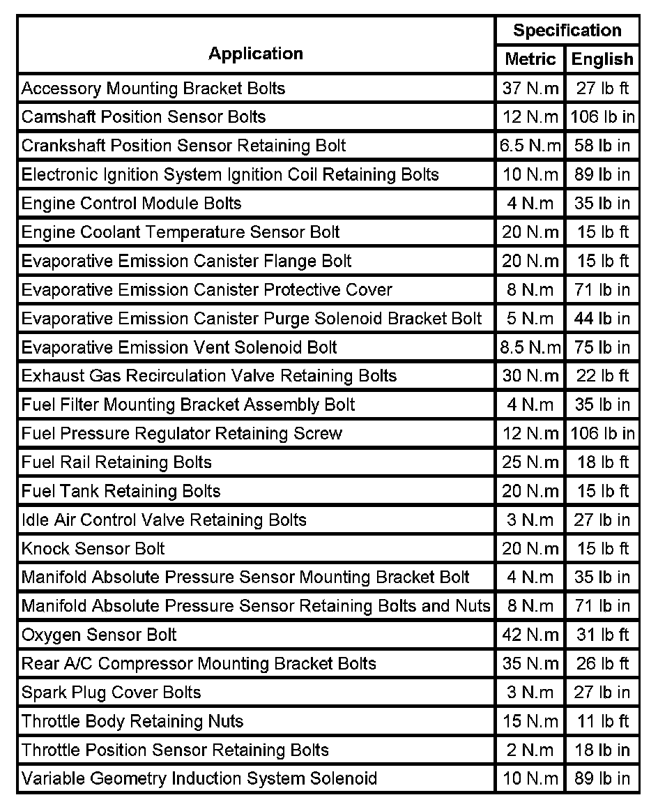 Fastener Tightening Specifications