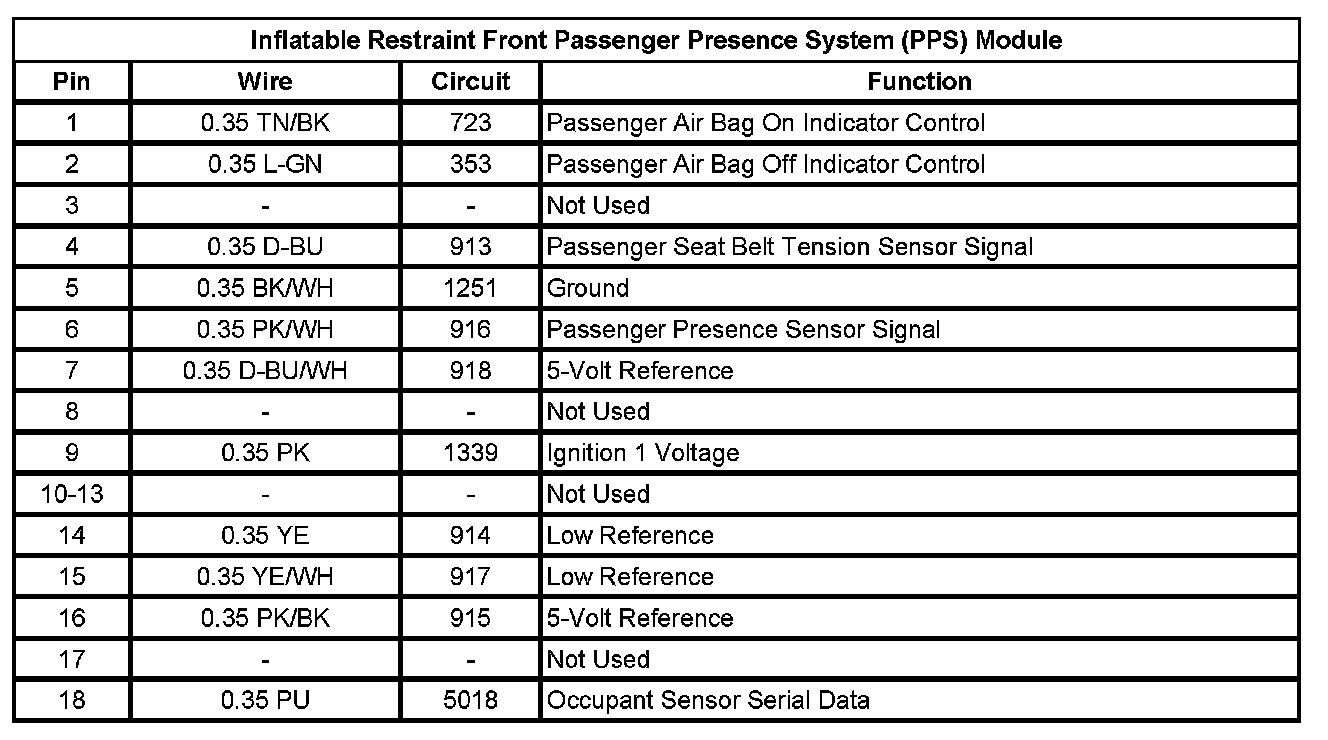 Inflatable Restraint Front Passenger Presence System (PPS) Module