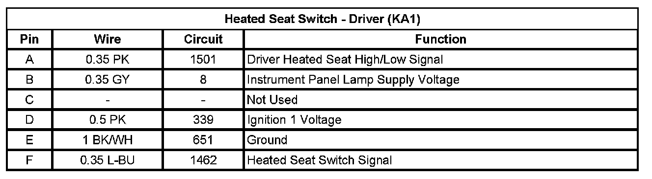 Heated Seat Switch - Driver (KA1)