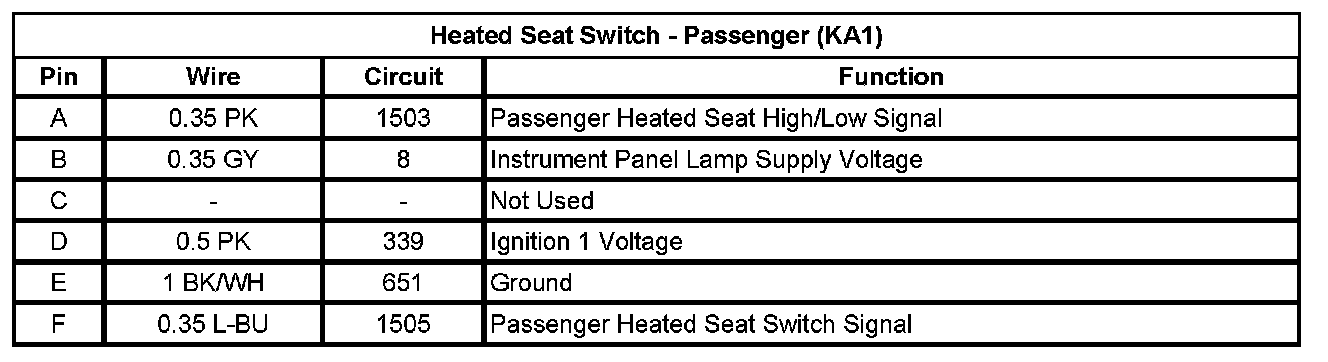 Heated Seat Switch - Passenger (KA1)