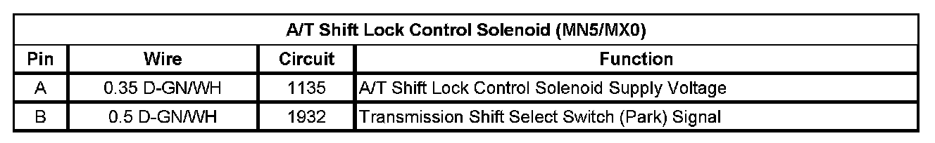 A/T Shift Lock Control Solenoid (MN5/MX0)