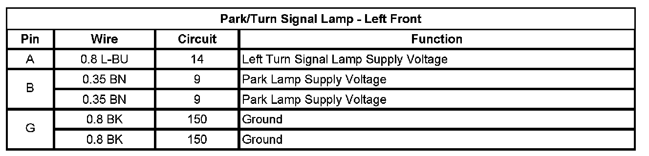 Park/Turn Signal Lamp - Left Front