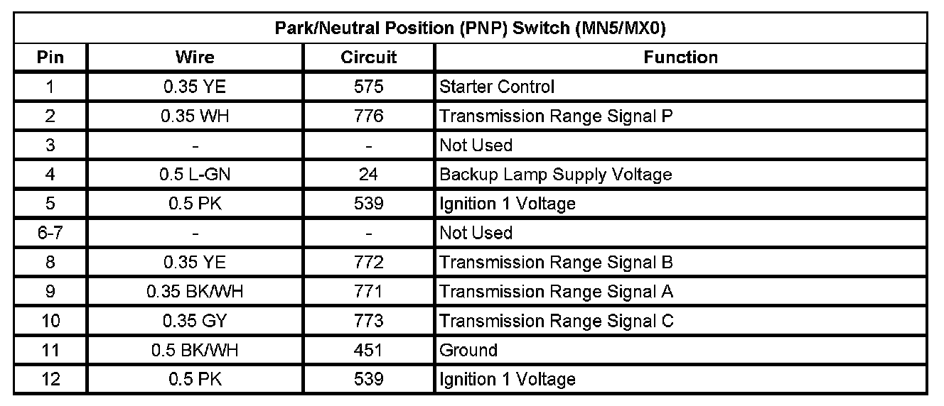 Transmission Position Sensor/Switch: Diagrams