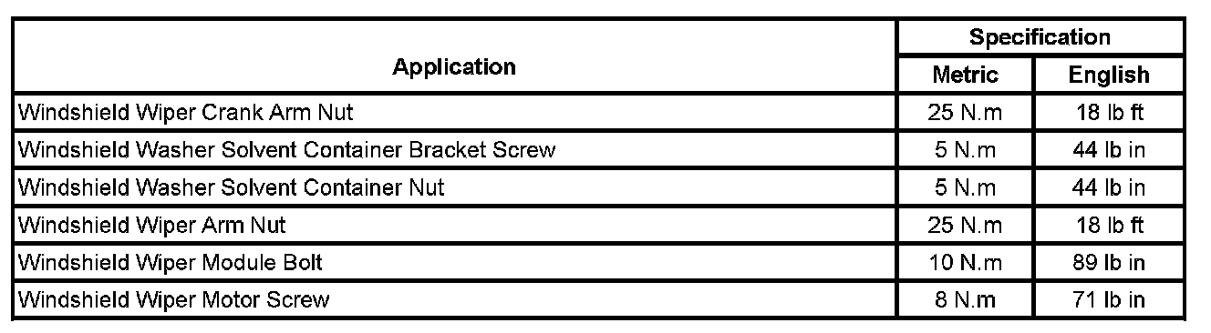 Wiper and Washer Systems: Specifications