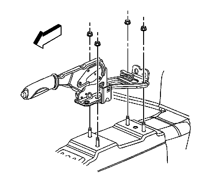 2. Install the park brake lever assembly mounting nuts.