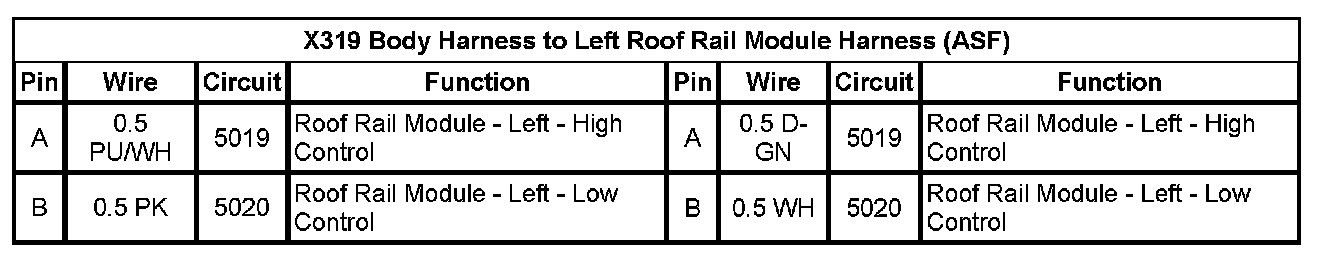 X319 Body Harness to Left Roof Rail Module Harness (ASF)