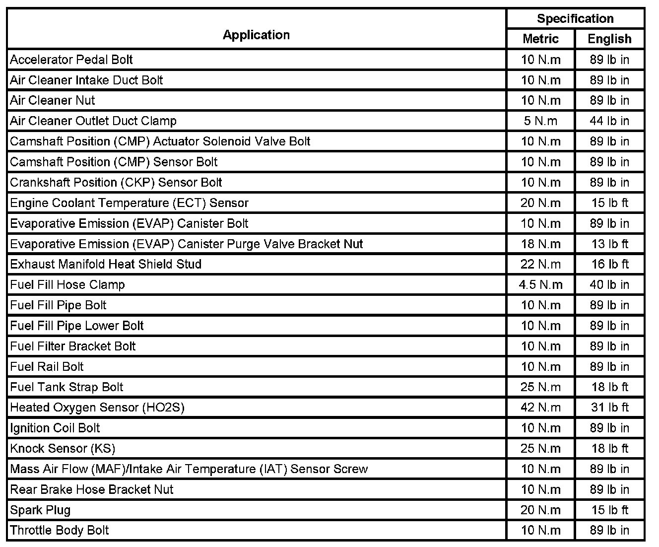 Fastener Tightening Specifications