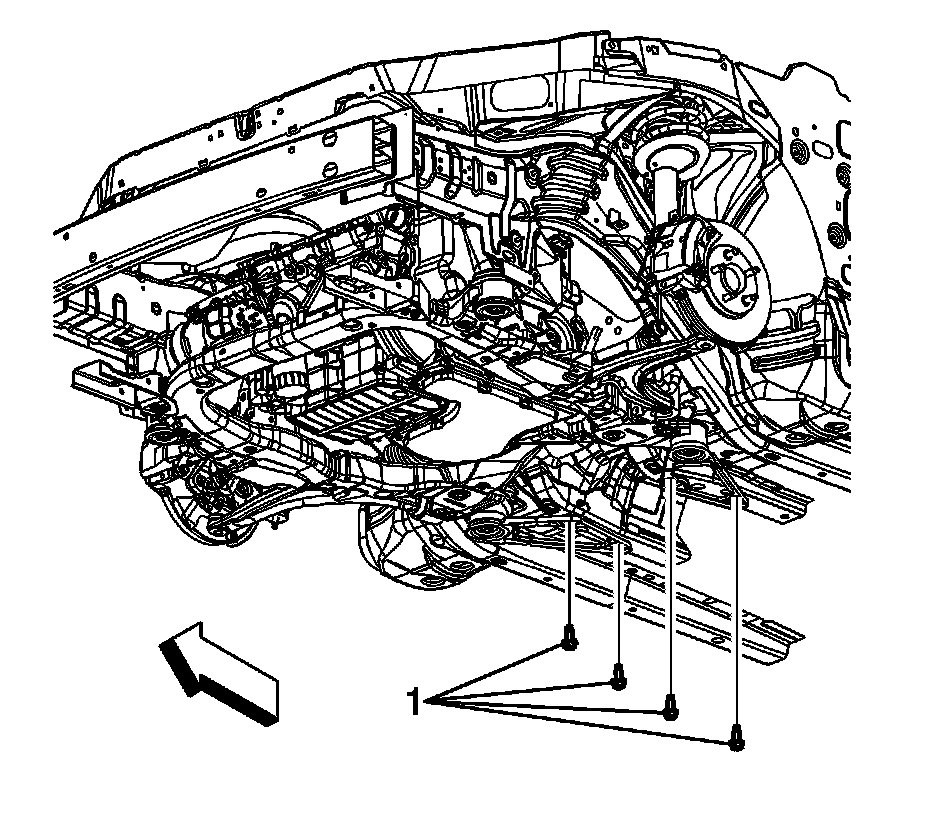 1.Remove the front frame bolts (1).
