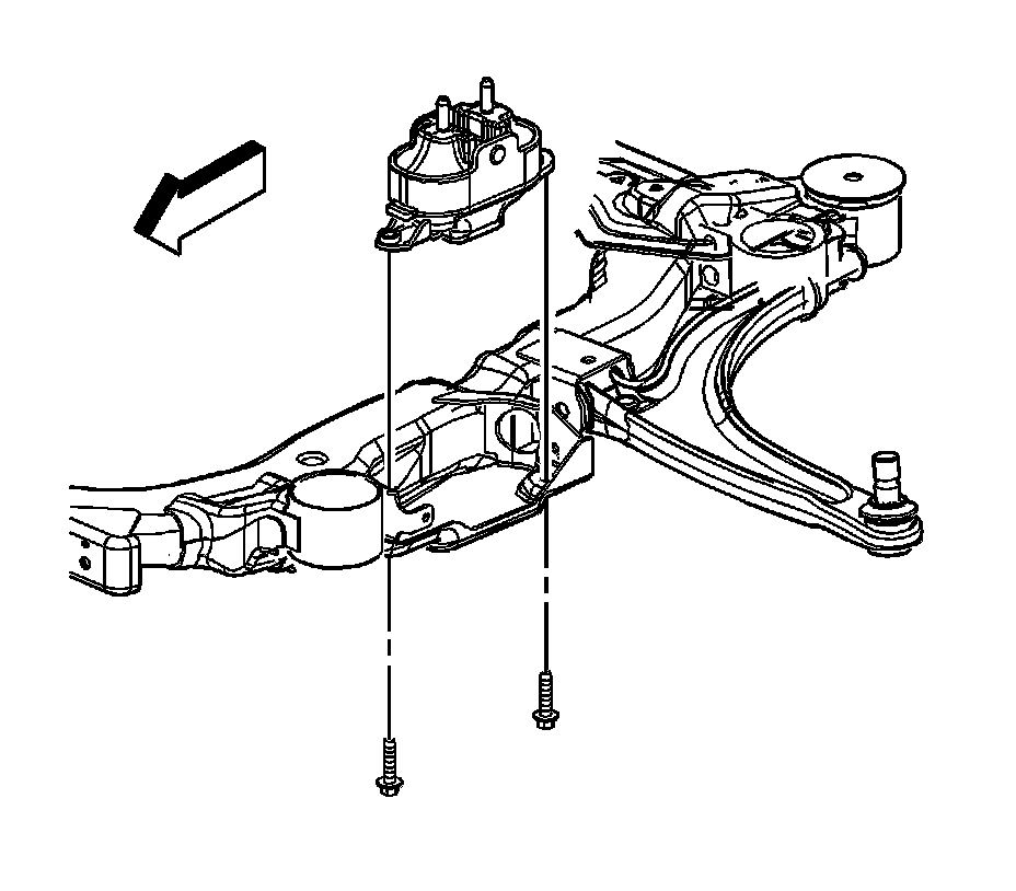1.Remove the front transmission mount bolt from the frame. Refer to Transmission Front Mount Replacement .