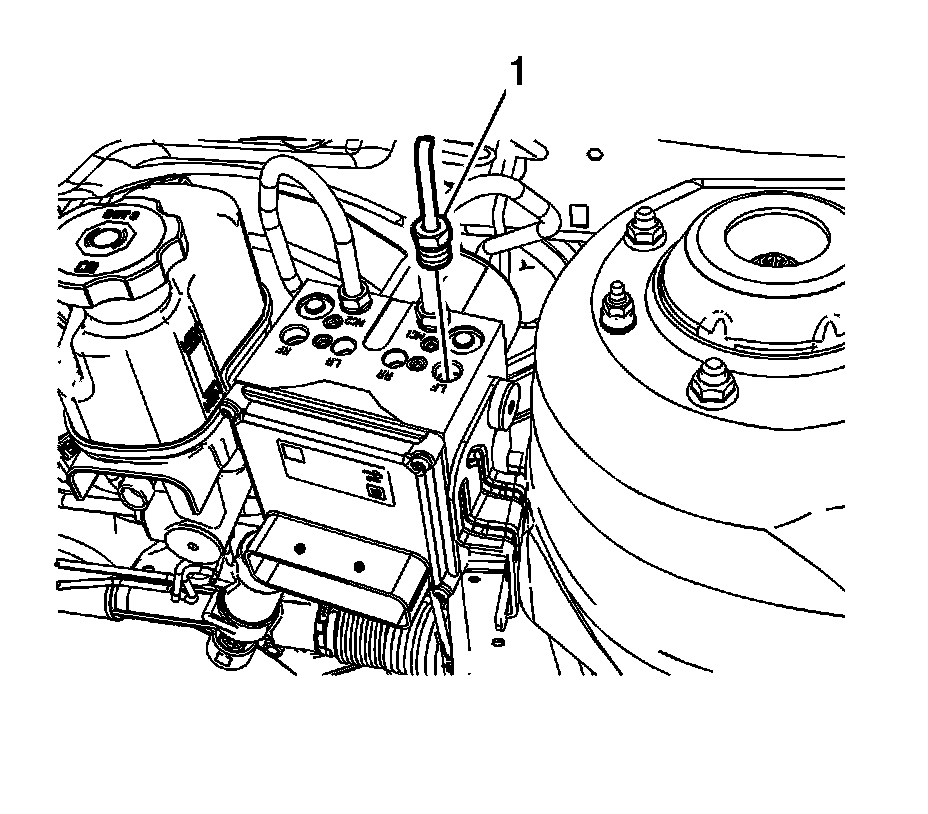 8. Disconnect the LF brake pipe fitting (1).
