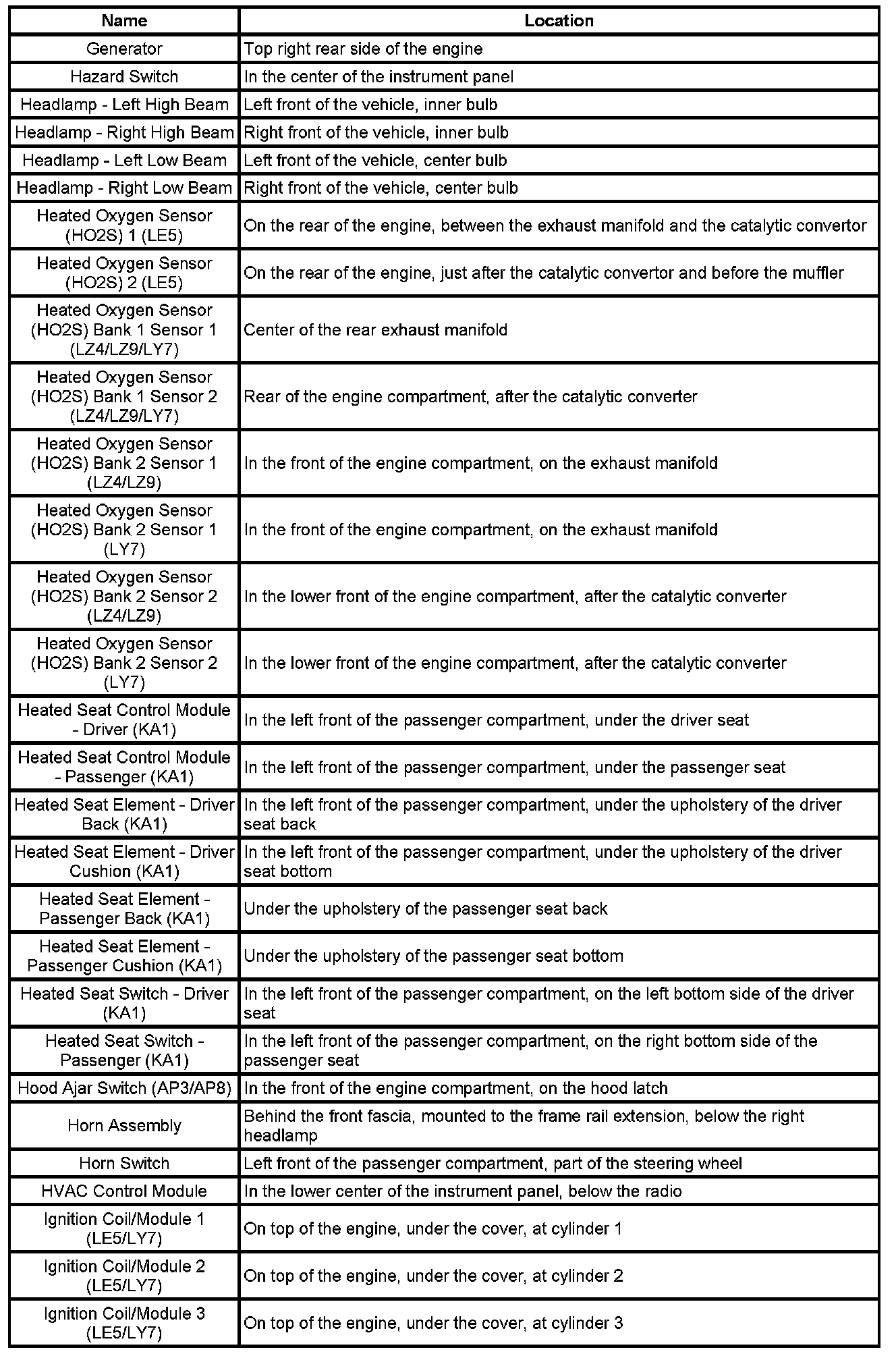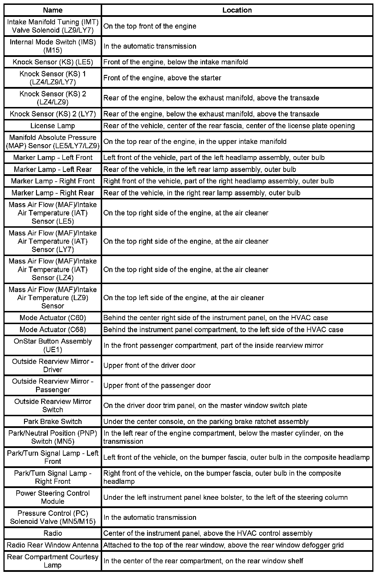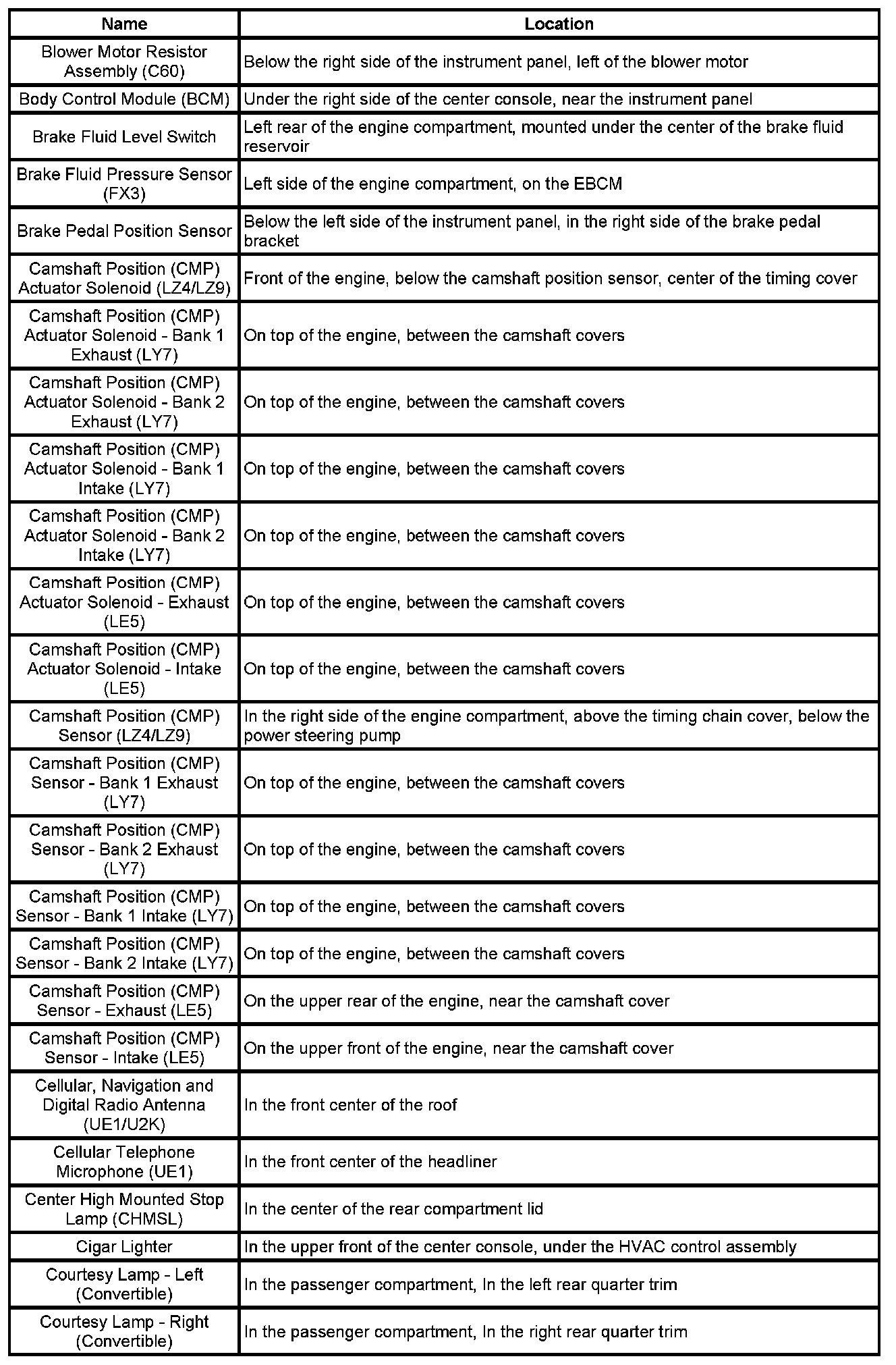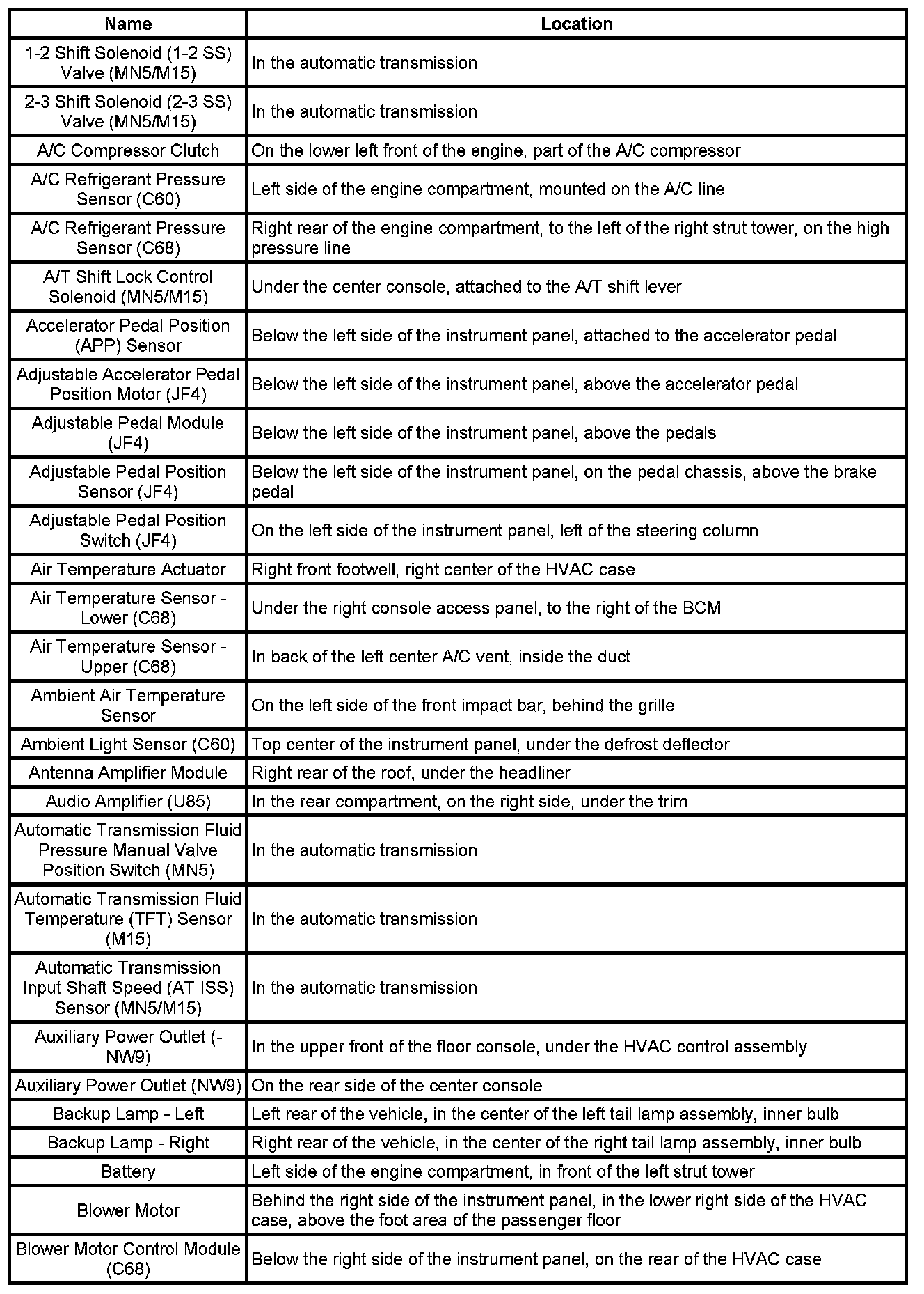 Master Electrical Component List