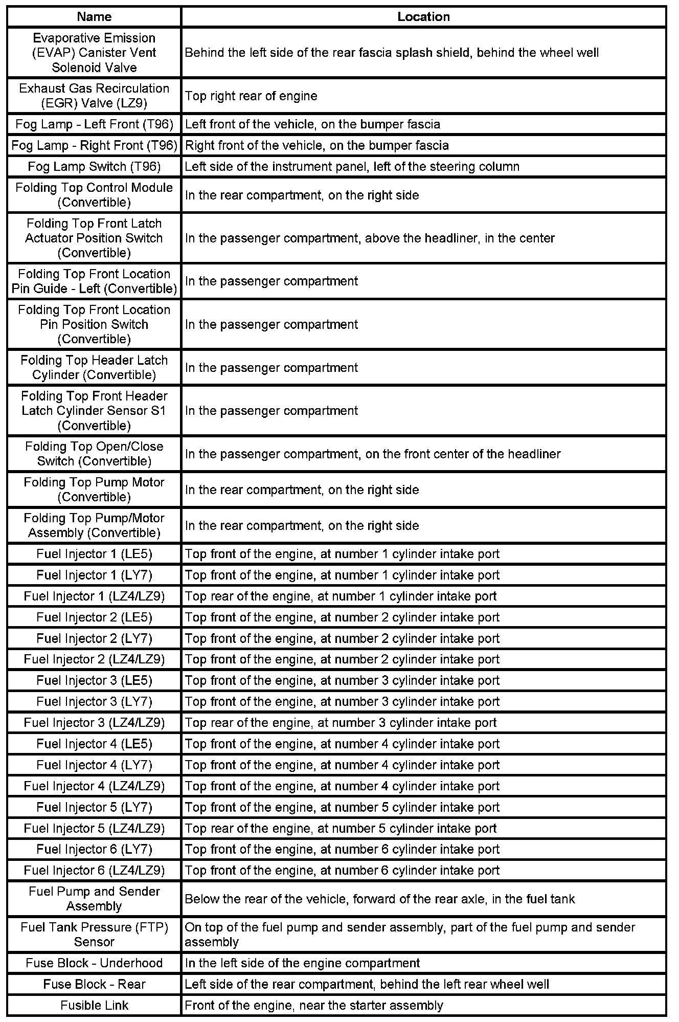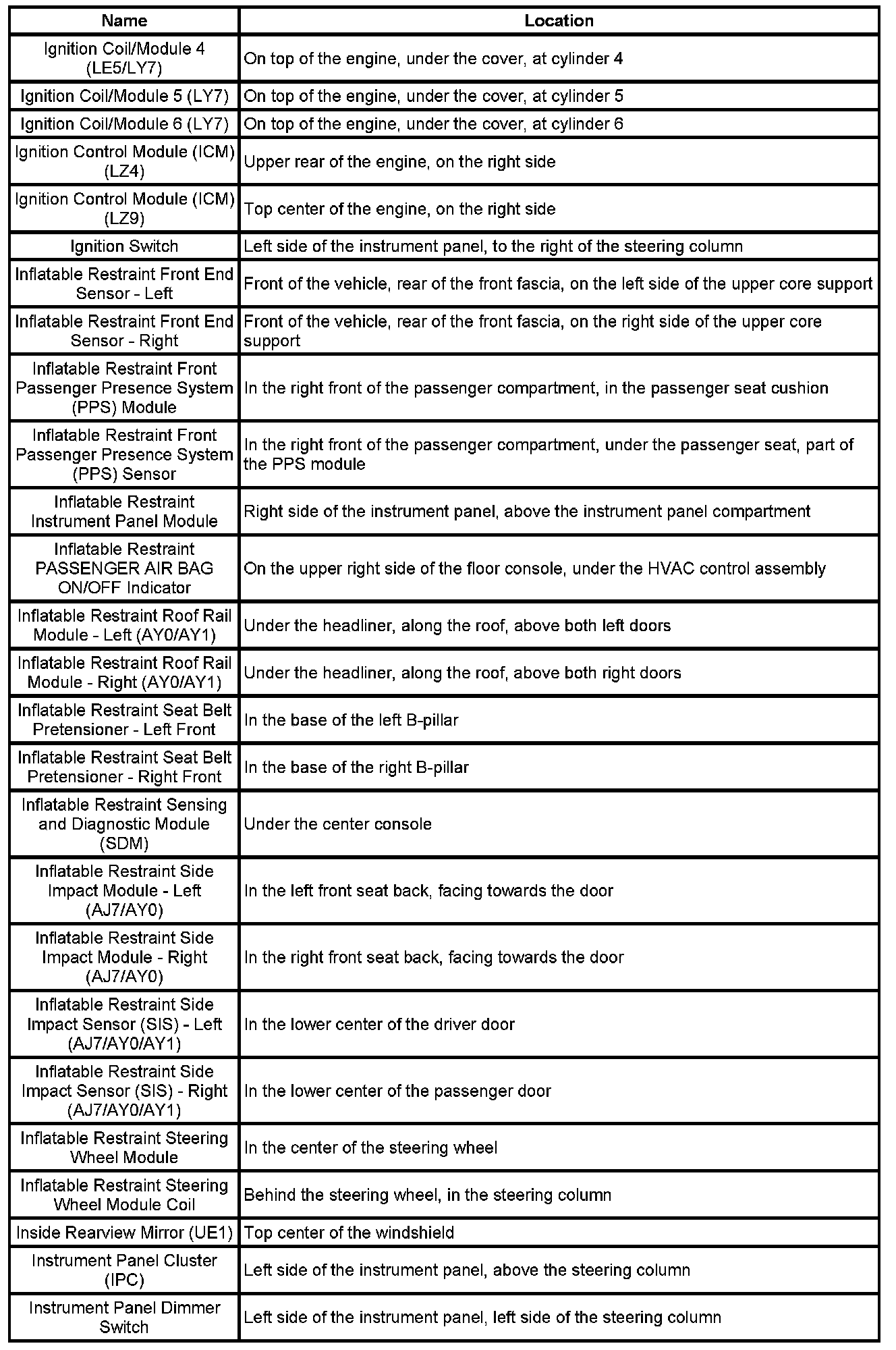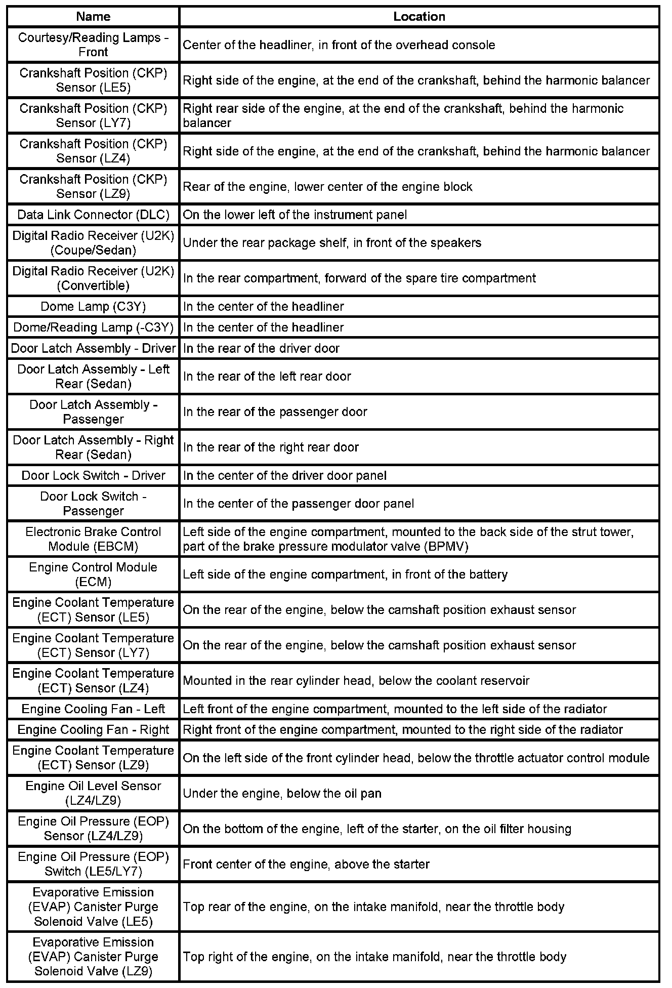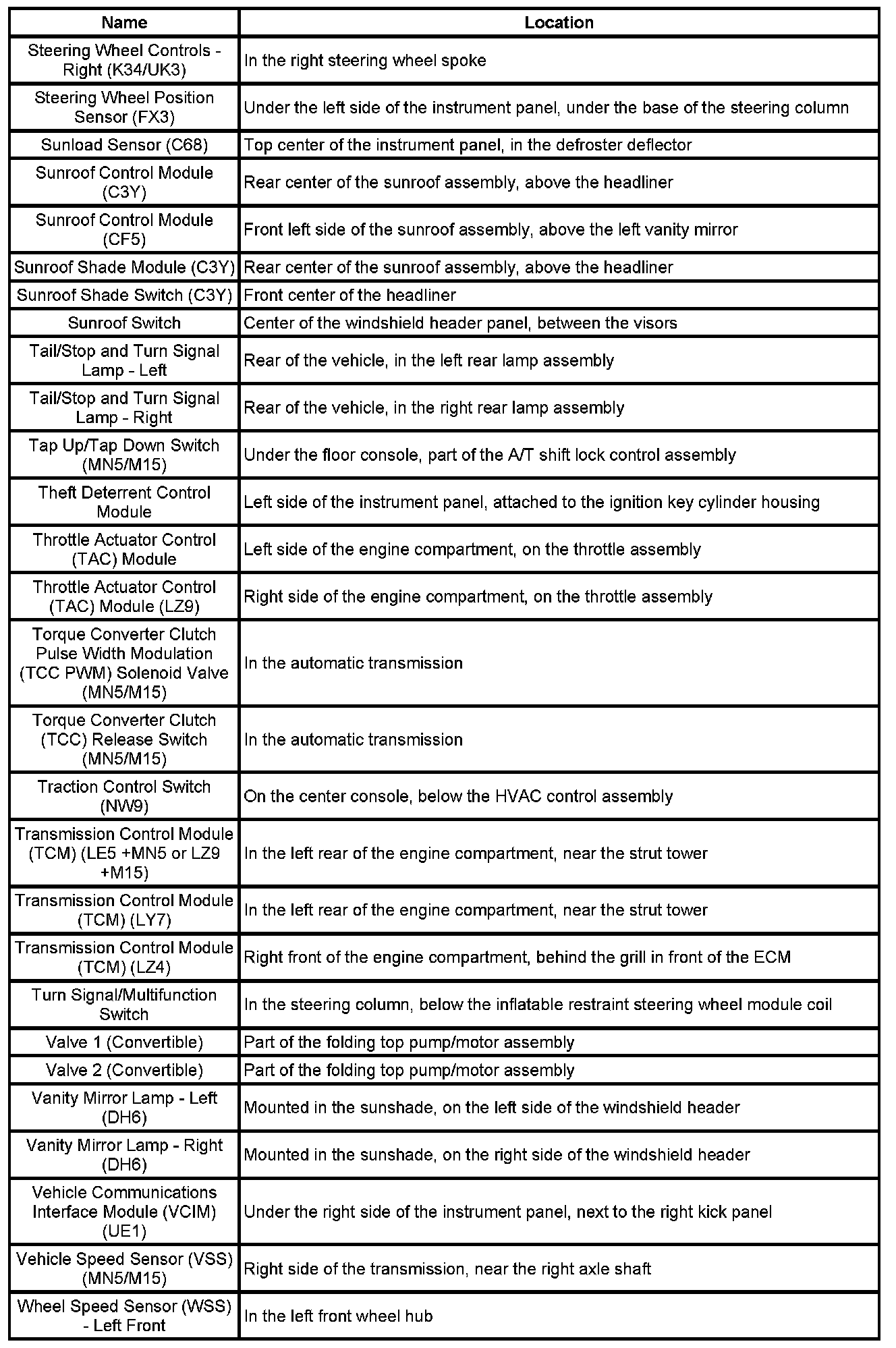 Master Electrical Component List