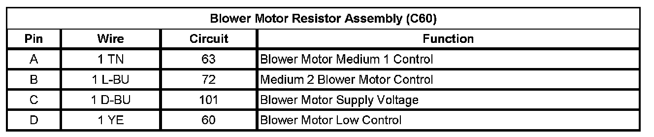 Blower Motor Resistor Assembly (C60)