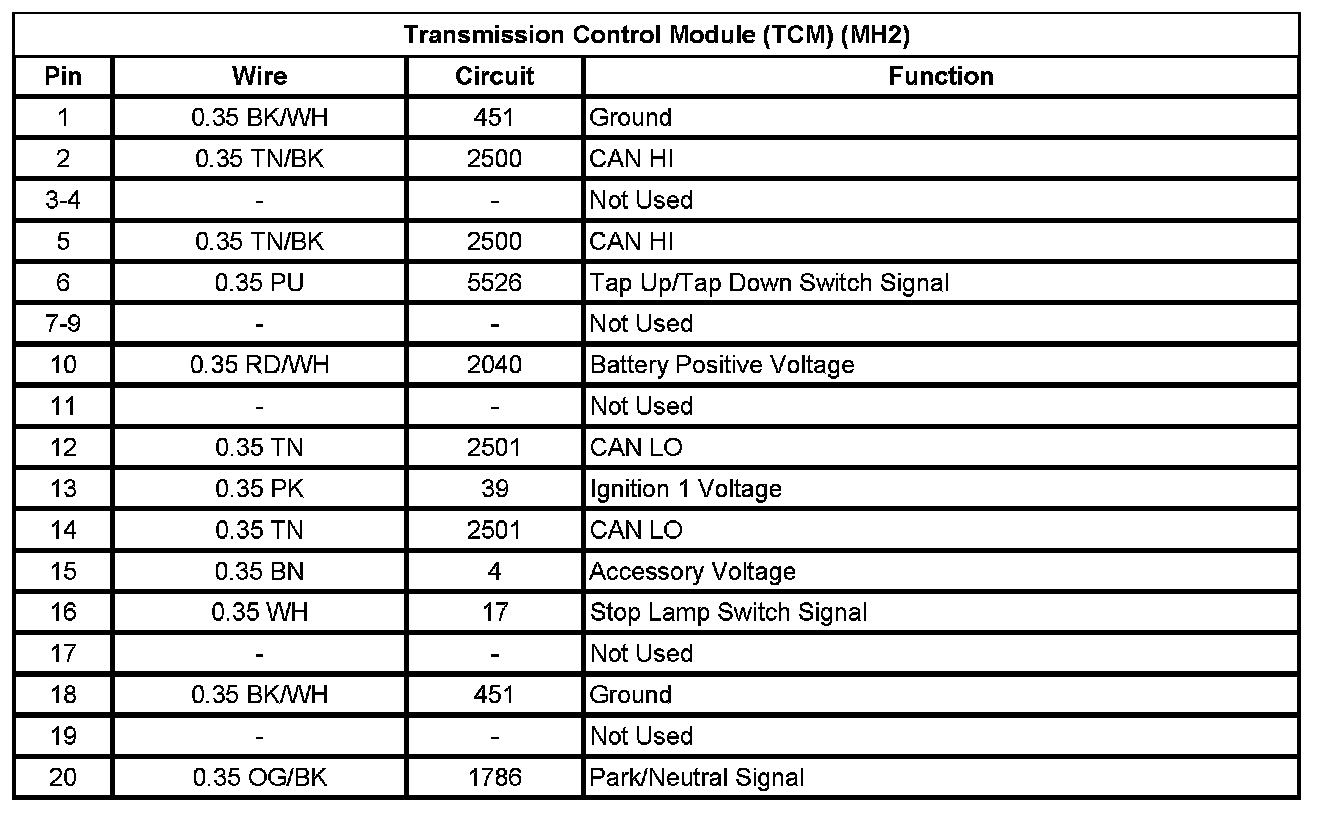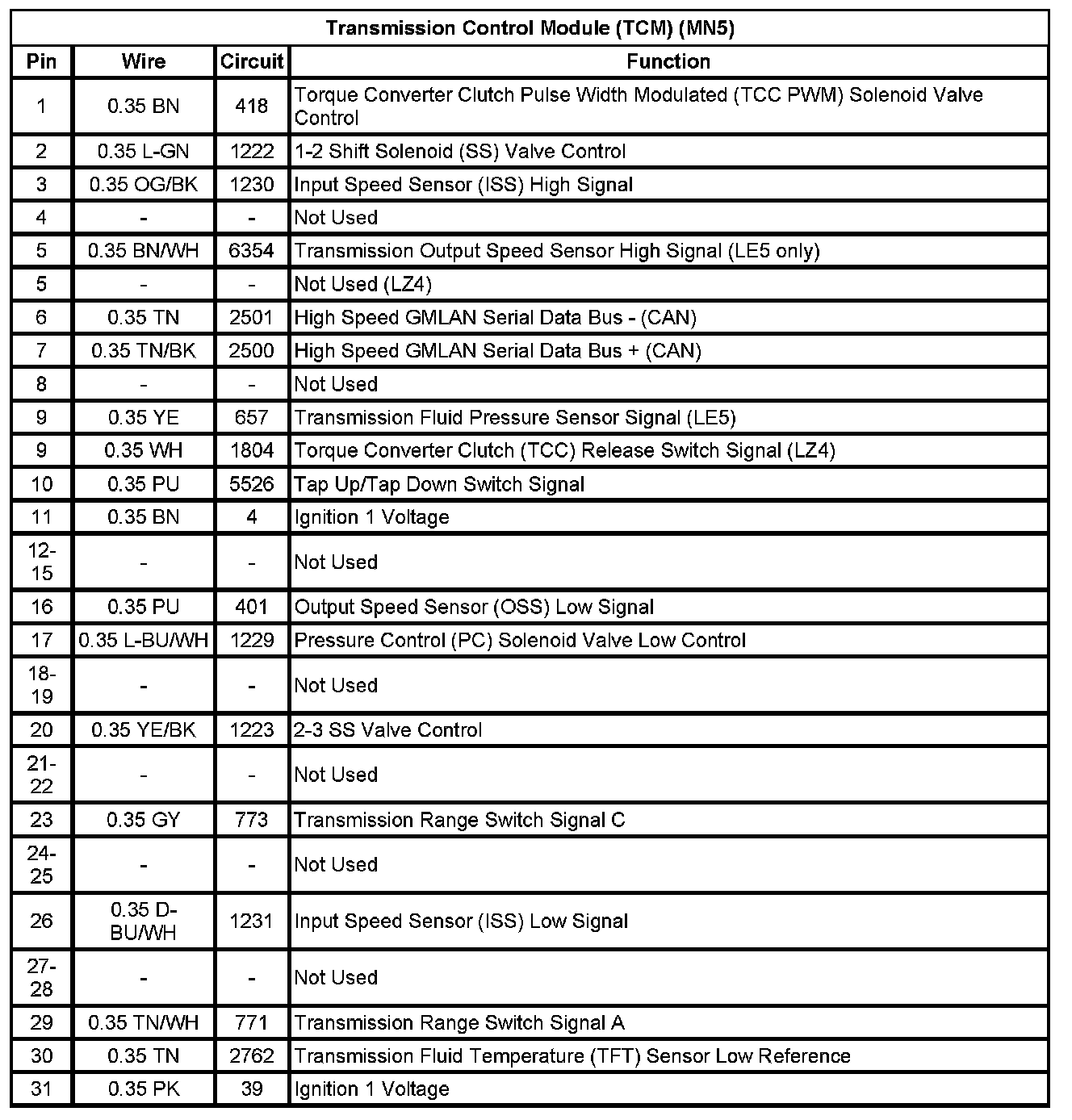 Transmission Control Module (TCM) (MN5) (Pin 1 To 31):