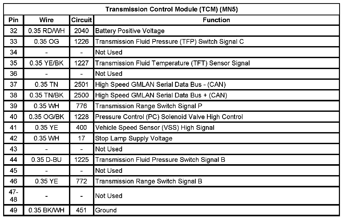 Transmission Control Module (TCM) (MN5) (Pin 32 To 49):