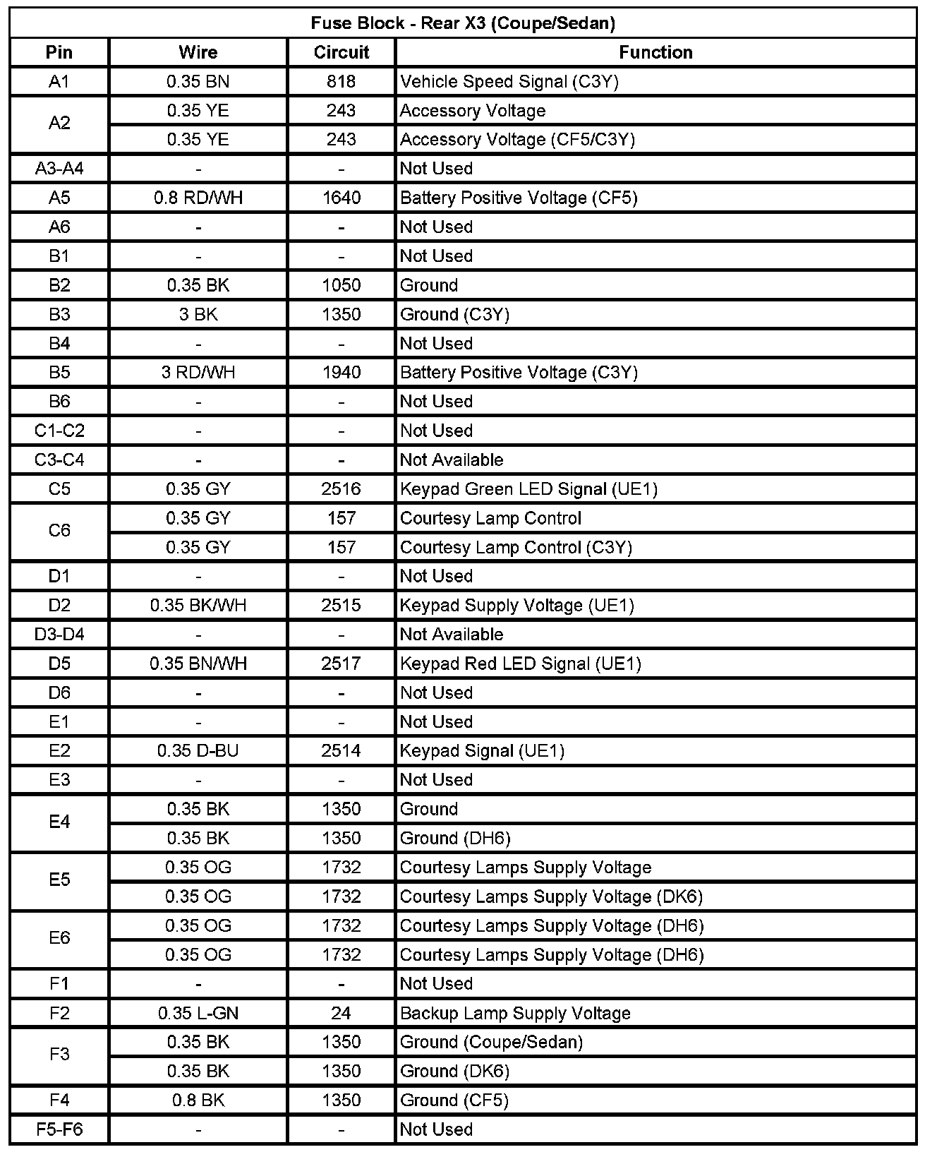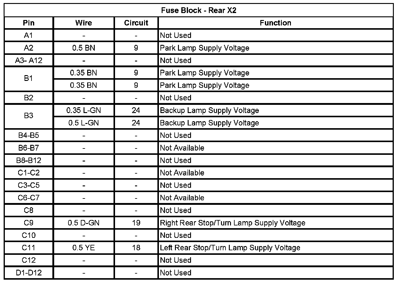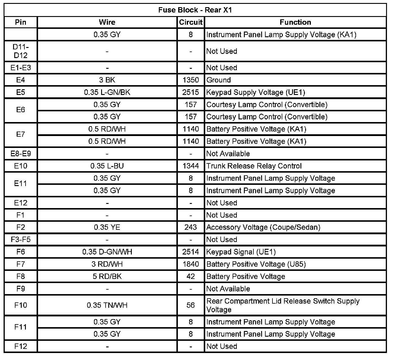 Fuse Block - Rear X1 (Pin D11 To F12):