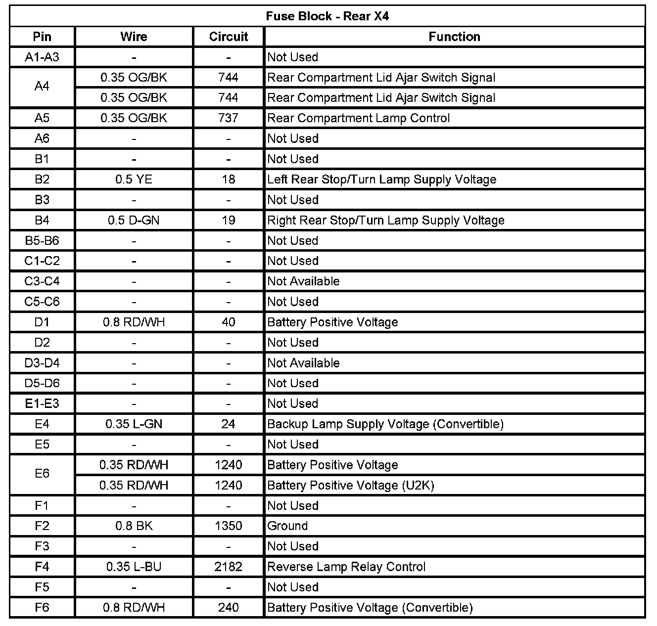Fuse Block - Rear X1 (Pin A1 To D10):