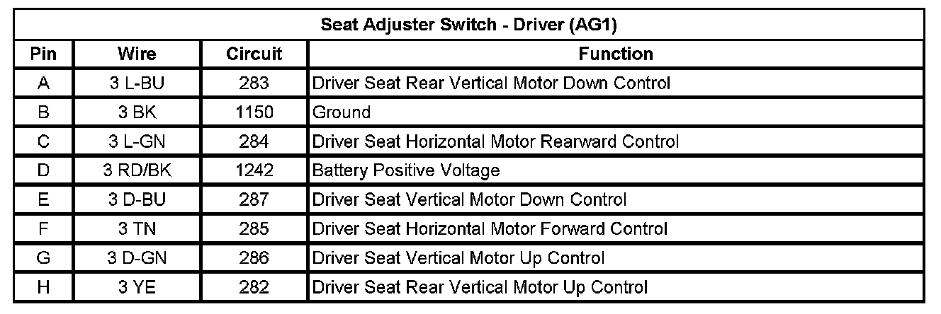 Seat Adjuster Switch - Driver (AG1)